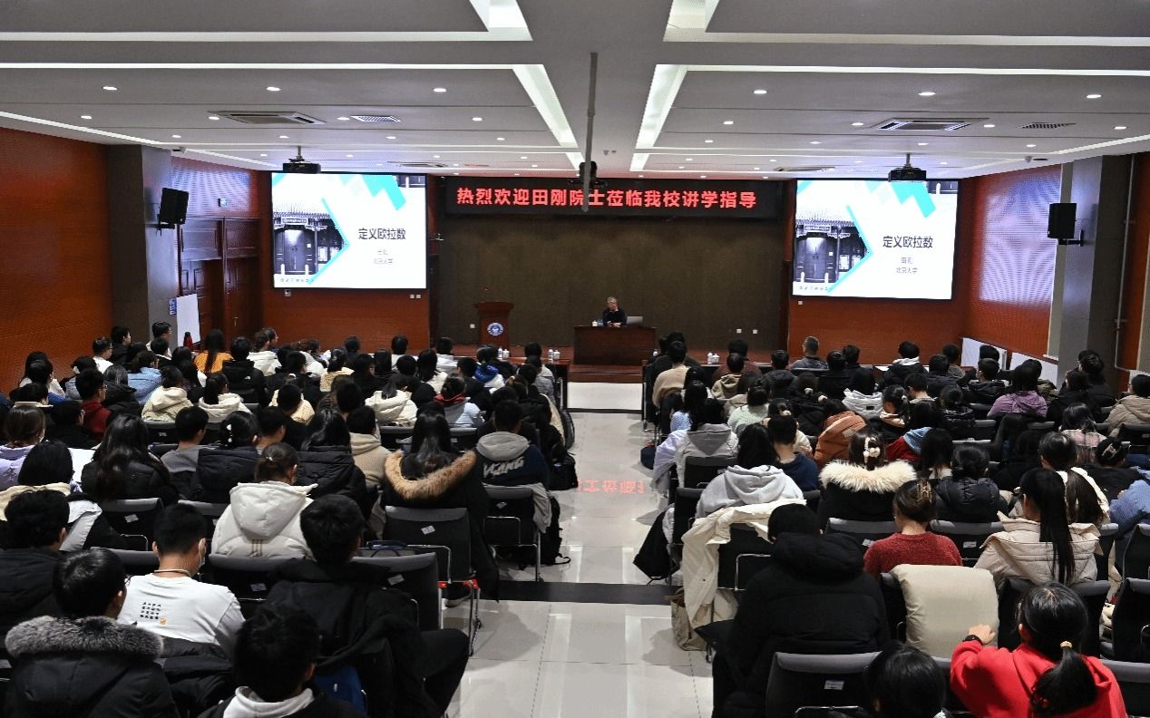 1月4日,应我校数学与统计学院邀请,国际著名数学家、北京国际数学中心主任田刚院士做客数苑大讲堂,为学院师生作了题为“定义欧拉数”的学术演讲。讲座前,我校校长徐海阳教授会见了田刚院士,感谢他一直以来对我校数学与统计学院学科发展的大力支持和帮助。讲座由徐海阳主持。包括陆家羲数学物理拔尖学生培养基地学生在内的来自数学与统计学院和物理学院等院系的百余名师生现场聆听了田刚院士的演讲。 讲座中,田刚院士从“...