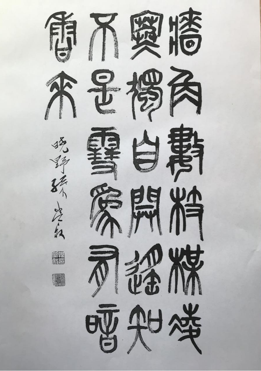 先生幼承家学,从小就对文字、金石之学产生了浓厚的兴趣,读小学时,即在其父介眉先生的指导下攻读《说文解字》,上初中后,开始摹印学篆,与同学张少斋、牟志超等于课外切磋研讨,作有《金石小集》。先生对吴大澂氏《说文古籀补》尤其用力,为了学习大篆,曾临摹石鼓文,并试写过一本《石鼓文简释》。