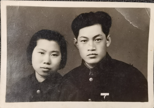 白皋赴沈阳学习之前,与未婚妻周玉梅去照相馆照了一张合影,未等照片洗出来即动身去沈阳学习,这一别就是近4年。照片洗出来后,周玉梅取出一张合影寄给白皋,并在照片背面写字寄语:
