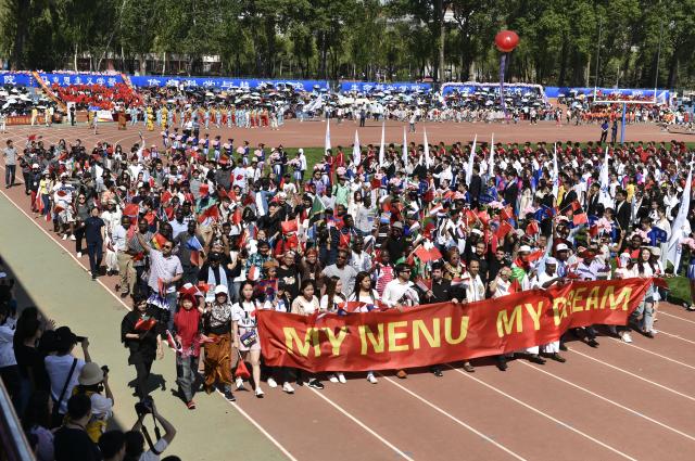 伴随激昂的进行曲,裁判员和运动员代表队依次入场,接受主席台检阅。他们步伐矫健,英姿勃发,热情洋溢,气势磅礴,“扎实推进学校‘双一流’建设”“为建设世界一流师范大学而努力奋斗”等的呐喊声响彻全场,彰显出东师人昂扬向上的精神风貌。