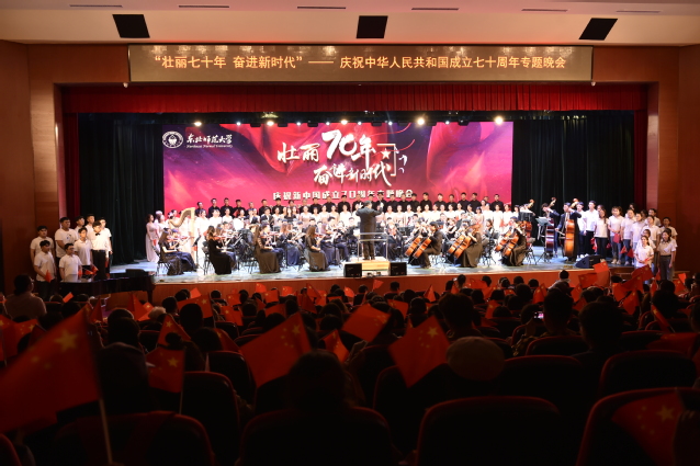 9月26日,音乐学院净月音乐厅内鼓乐齐鸣、欢歌如潮,“壮丽七十年,奋进新时代”——庆祝新中国成立70周年专题晚会在这里隆重举行。本次活动由党委宣传部、校工会、党委学生工作部、校团委、音乐学院联合主办。学校党委书记杨晓慧、党委副书记王延、党委副书记兼副校长马晓燕、副校长韩东育、副校长王占仁、校长助理薛利锋,部分机关部处、学院(部)相关负责人与广大师生一同观看了演出。