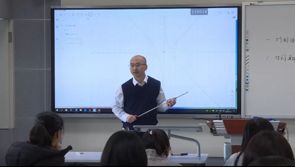 “同学们,请观察下面这组图片,我们一起来回想一下,什么是对称图形?在中学数学中,对称变换的基本形式是什么?”教室中,一位男老师正指着大屏幕上的几幅图案,通过问题导入的方式开启这节新课——“对称变换”。