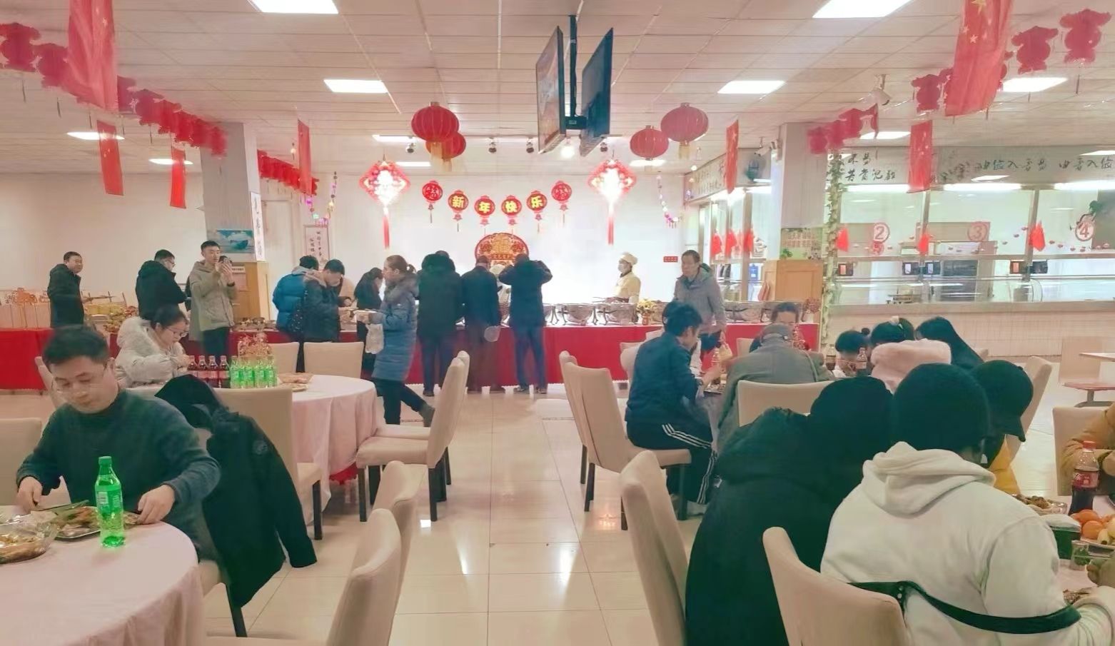 傍晚时分,食堂里张灯结彩,语笑喧阗,洋溢着温馨祥和的新年气氛,快随奶牛君一起感受东师校园的浓浓年味儿吧!